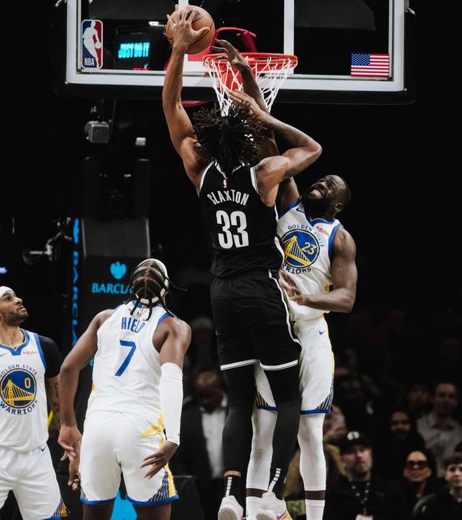 末节决战,特拉奥雷轰进远投,希尔德抢断后上篮得分,托马斯失误,库里外线得手。篮网请求暂停,理查德轰进远投,克洛尼2罚1中。勇士连续外线打铁,但接连抢下前场篮板,格林2罚1中,克洛尼回敬三分球。科尔请求暂停,杰明与波杰姆斯基对射远投,梅尔顿、理查德相继单打取分。杰明失误,戴维斯暴扣,勇士打出了9比0的攻势将分差扩大至12分。