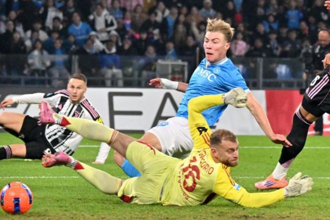 那不勒斯主场和尤文迎来关键战,上半场第7分钟内雷斯下底横传,霍伊伦门前包抄打破僵局。上半场快结束的时候,麦克托米奈的头球击中了立柱,差一点就能再次改写比分。处于落后的尤文在下半场第59分钟由伊尔迪兹扳平了比分。第78分钟,那不勒斯继续下底传中,麦肯尼解围失误乌龙助攻,霍伊伦头球梅开二度,最终那不勒斯2-1力克尤文迎来三连胜,以31分暂列榜首。